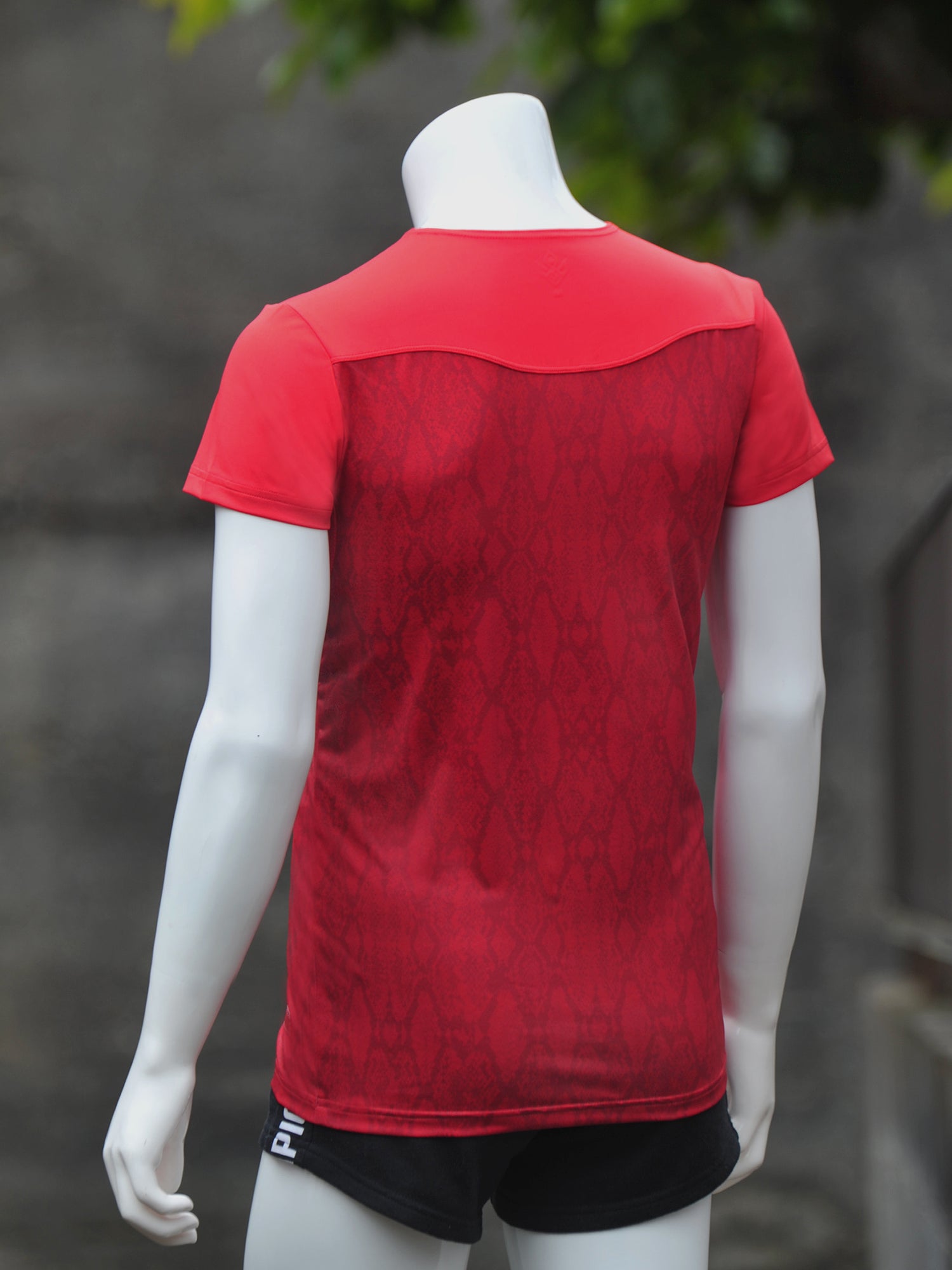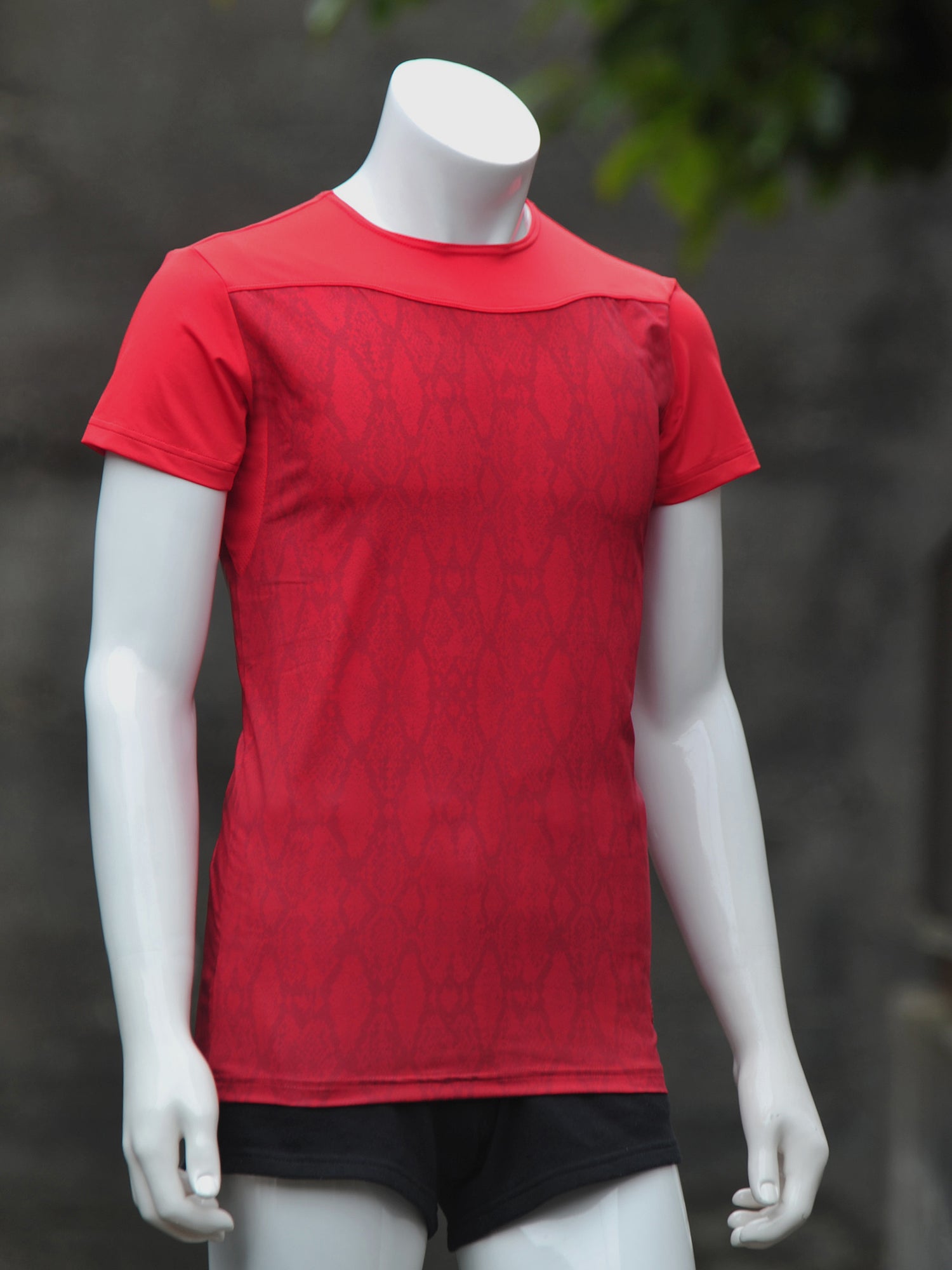 スポーツマンの鍛えた筋肉が更に整うように見せる配色と、デザイナーが陰影技術で1粒ずつ描いたこだわりのパイソン柄。